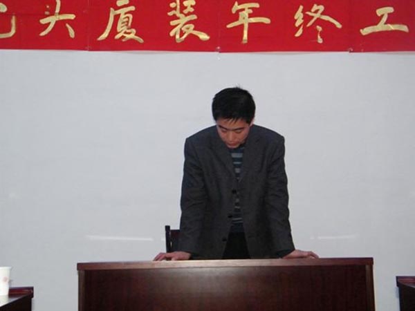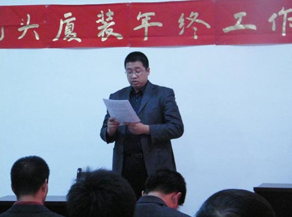 隨著新年鐘聲的臨近,我司于2010年12月31日,下午13:30分在公司三樓會議室召開了2010年年終工作總結(jié)及優(yōu)秀員工表彰大會。此次會議目的既是讓大家對公司成立以來的熬人業(yè)績、明年的整體發(fā)展趨勢、任務指標,以及公司對每位職工工作的肯定做了一一講解。營造全體員工團結(jié)凝聚、以廠為家、共同奮進的氛圍,回顧過去我司做出了當年建廠、當年投產(chǎn)、當年銷售的令人矚目成就。通過此次會議,公司全體同仁堅信在大家共同努力下,我司產(chǎn)品必能遍布內(nèi)蒙古中西部及陜北地區(qū),并且在所有同行當中永居鰲頭,成為全內(nèi)蒙、全國、全世界第一品牌。